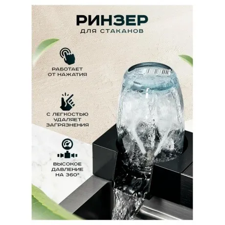 мойка, панель-смеситель, излив выдвижной с лейкой, кран для питьевой воды, выпуск полуавтоматический, дозатор для моющего средства, ринзер полуавтоматический, Колландер - 2шт, доска разделочная, сифон, гофра, гибкая подводка, кран угловой