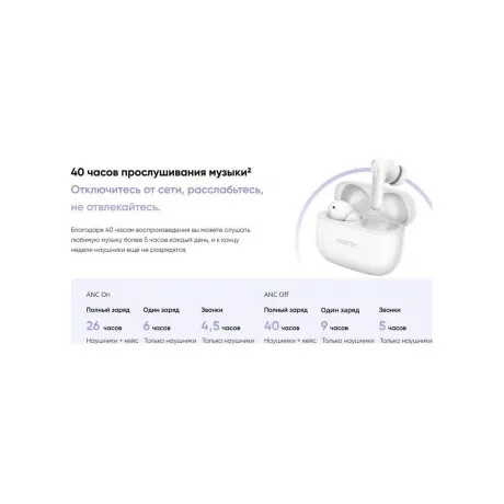 Беспроводные TWS-наушники Realme Buds T310 представляют собой современное и функциональное устройство, обеспечивающее высокое качество звука и комфорт при использовании. Наушники оснащены Bluetooth 5.4, что обеспечивает стабильное и быстрое подключение к различным устройствам. Версия Bluetooth соответствует стандартам EAC, что гарантирует высокое качество и безопасность использования. Удобные наушники имеют внутриканальную конструкцию и оснащены мягкими амбушюрами, которые обеспечивают комфортное ношение в течение длительного времени. Портативные наушники Realme Buds T310 имеют класс защиты IP55, что делает их устойчивыми к воздействию пыли и влаги. Это позволяет использовать наушники в различных условиях, не беспокоясь о возможном повреждении. Bluetooth наушники поддерживают кодеки AAC и SBC, что обеспечивает высокое качество звука при прослушивании музыки, просмотре фильмов и общении в голосовых вызовах. Белые наушники Realme Buds T310 оснащены тремя микрофонами, что позволяет использовать их в качестве гарнитуры для общения в голосовых вызовах и видеоконференциях. TWS наушники имеют емкость аккумулятора 480 мАч, что обеспечивает до 40 часов работы от аккумулятора при использовании одного наушника и до 40 часов работы от аккумулятора в кейсе. Время зарядки наушников и кейса составляет всего 2 часа. Выбирая беспроводные наушники Realme Buds T310, вы получаете качественное и функциональное устройство для комфортного прослушивания музыки и общения.