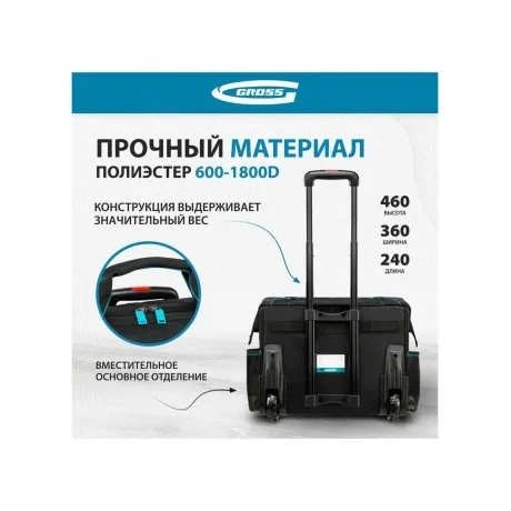 Описание товара Сумка для инструмента, 460х240х340мм, выдвижная рукоятка, колеса Gross