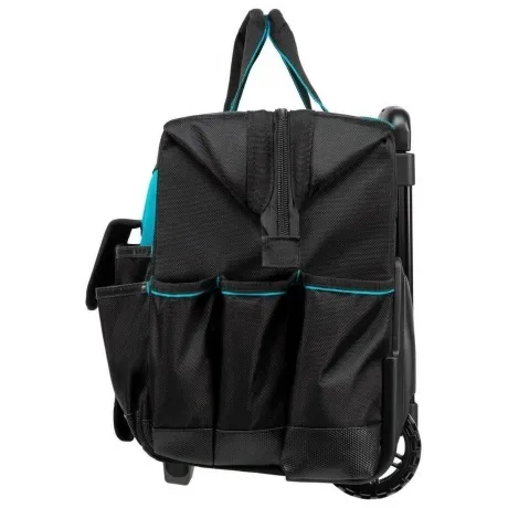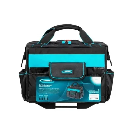 Сумка Gross 90277 размером 460 х 240 х 340 мм, с выдвижной рукояткой и колесами, имеет 18 карманов и вместительное основное отделение, в которые можно сложить необходимый ручной и электроинструмент. Сумка пригодится дома, в гараже и в поездке.