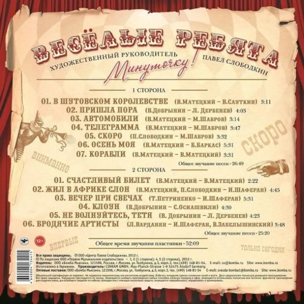 Отзывы о товаре Виа Весёлые Ребята - Минуточку! (4640004134415) виниловая пластинка