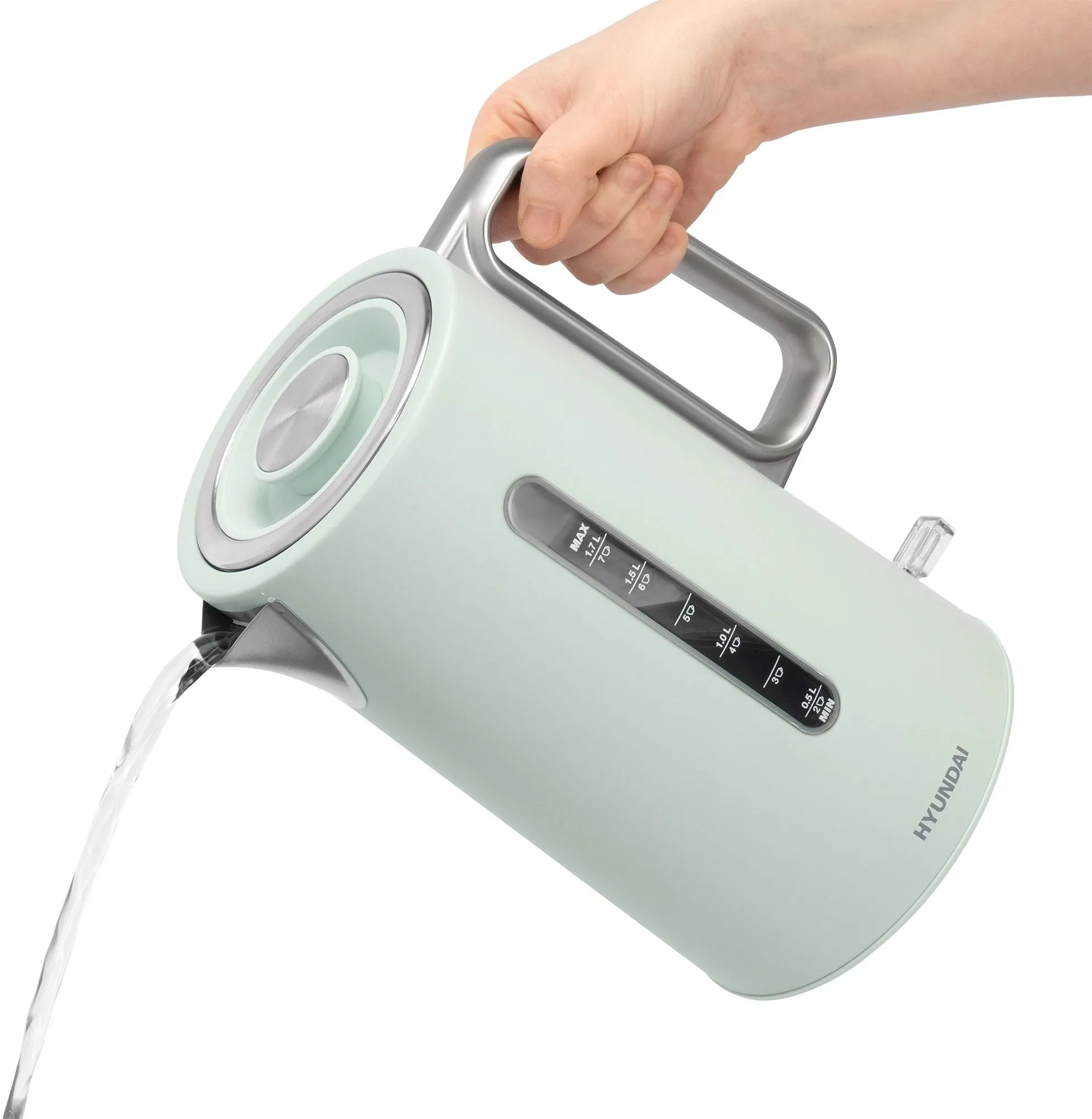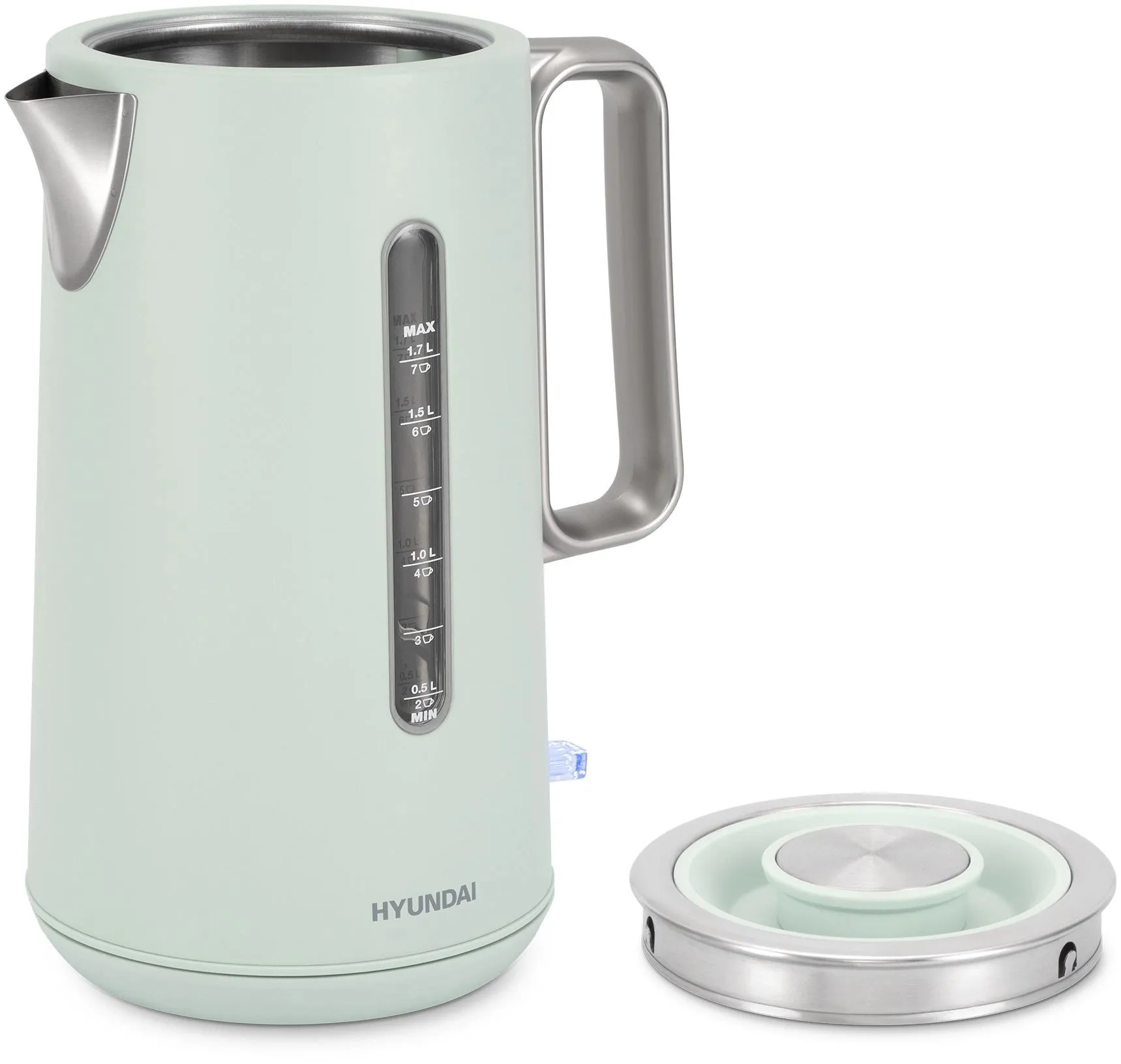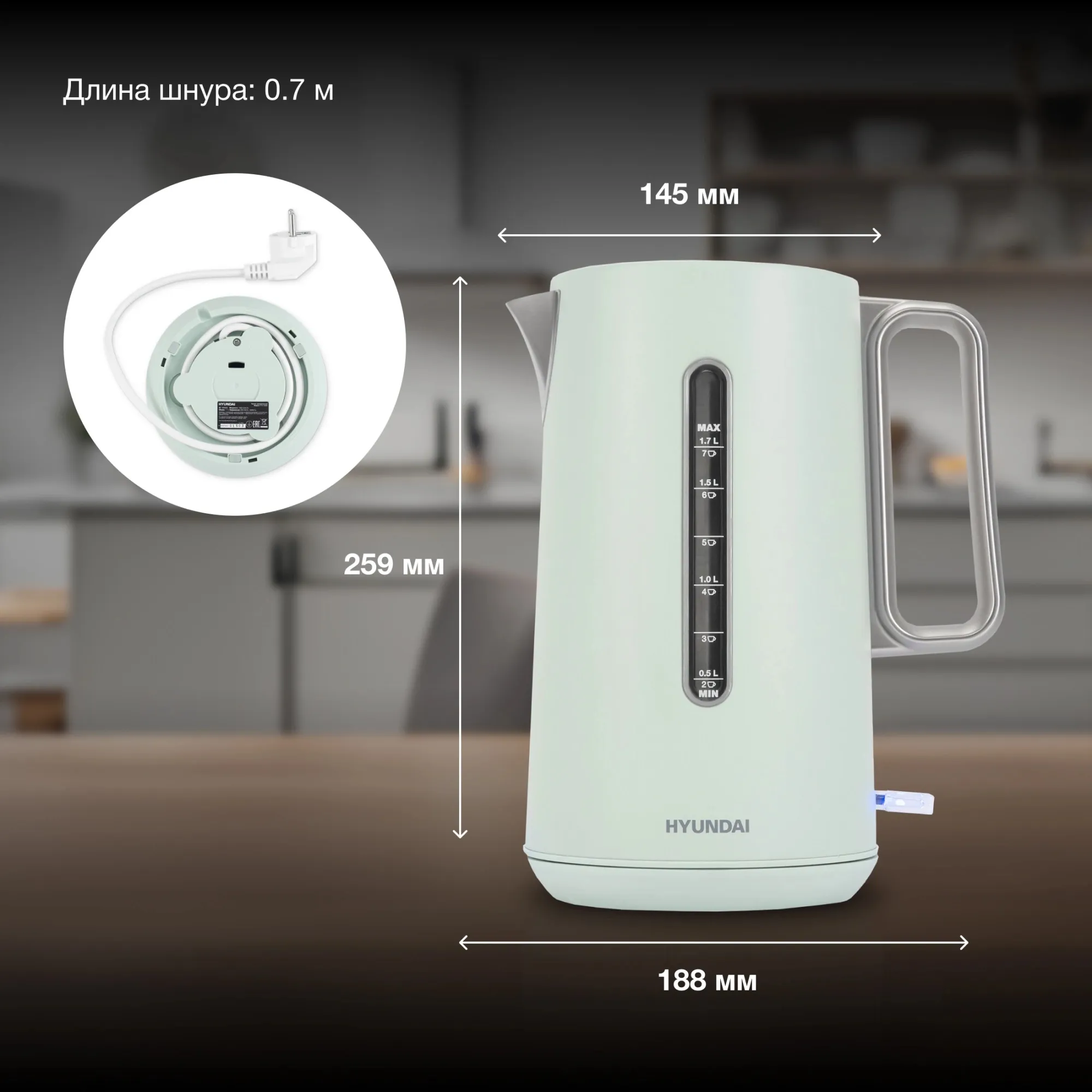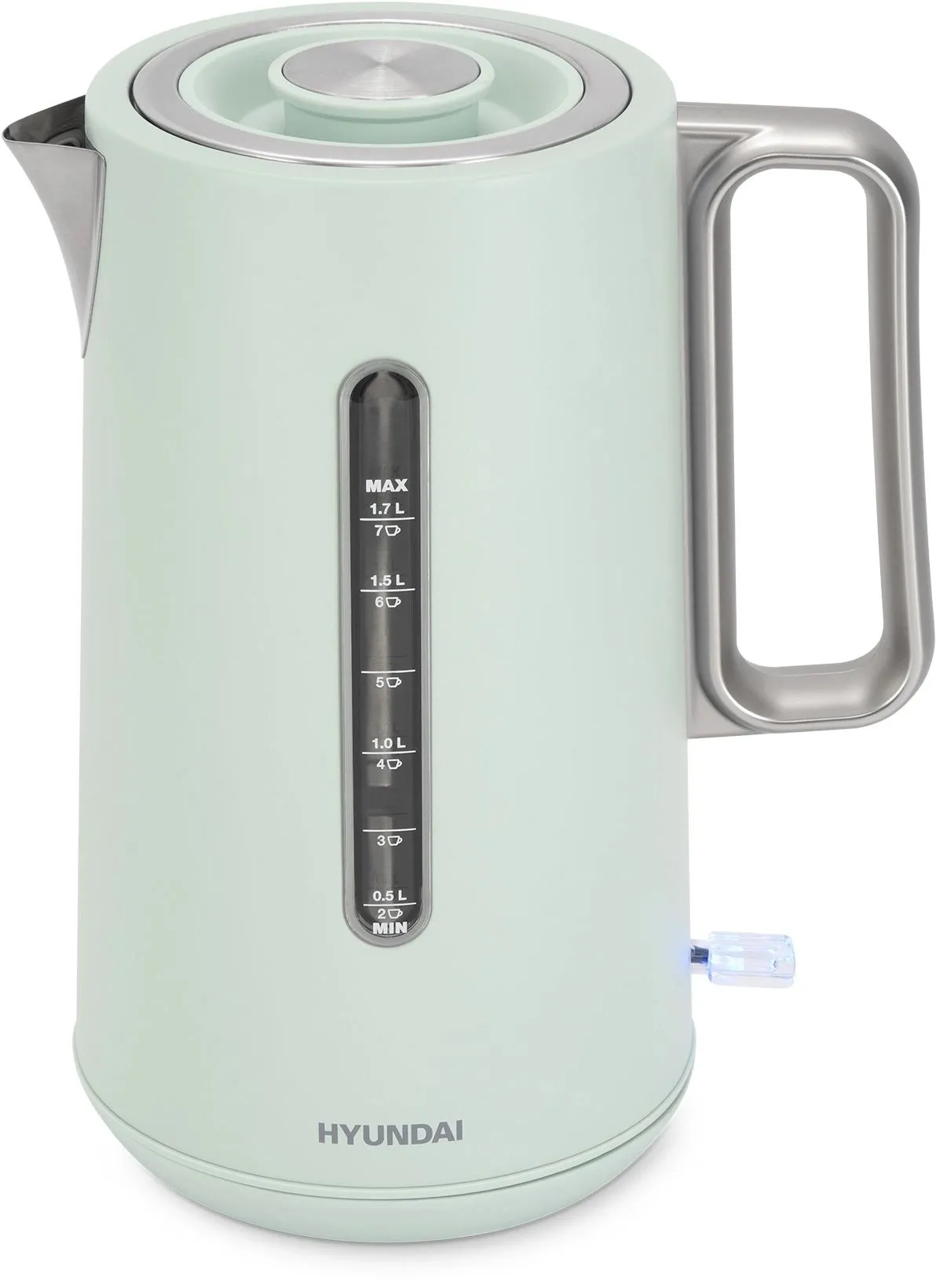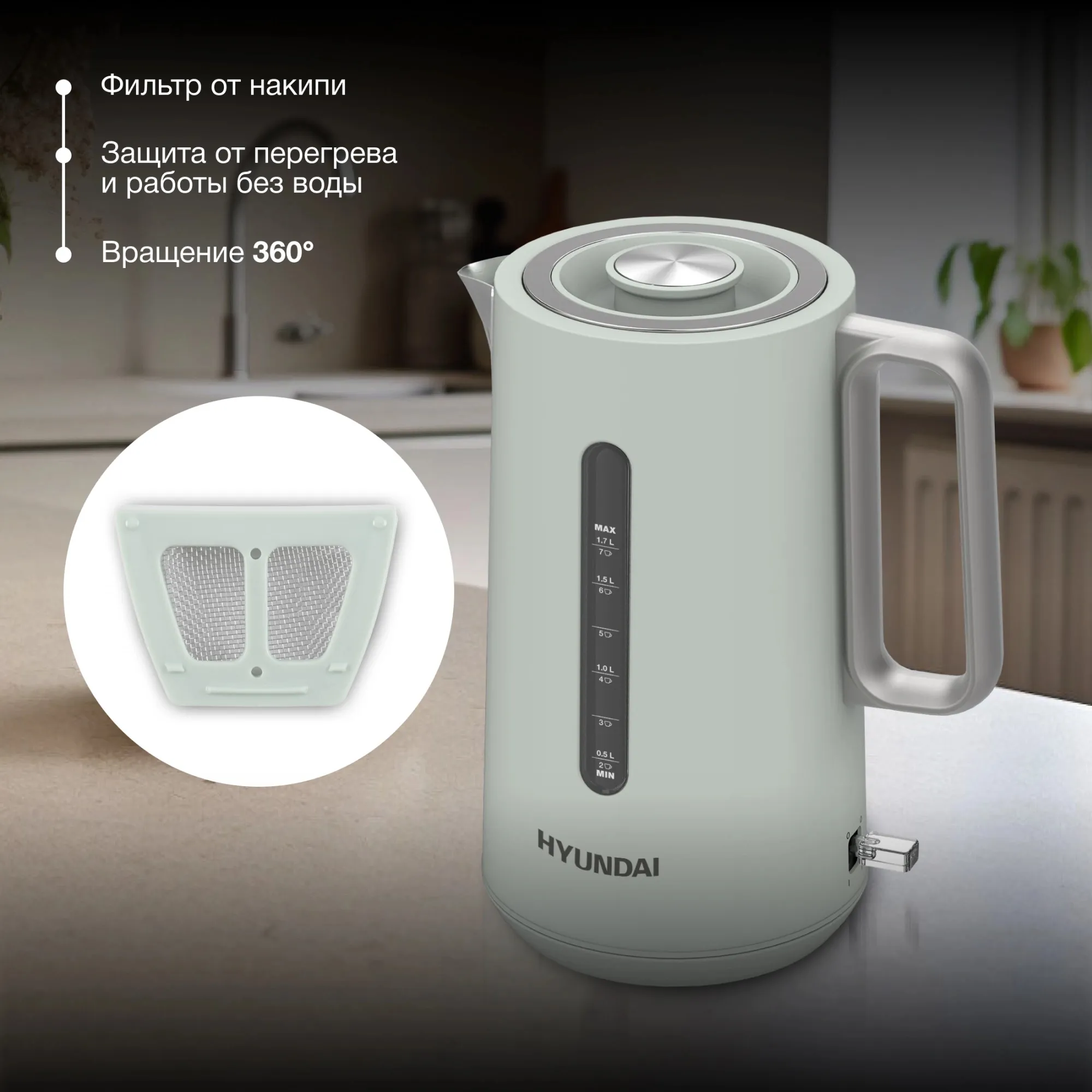 Элегантный дизайнерский чайник, в приятном нейтральном цвете с оригинальной и удобной ручкой будет украшением на любой кухне. Чайник выполнен из высококачественных материалов, что гарантирует его долговечность и надежность. Корпус изготовлен из нержавеющей стали, которая не только выглядит стильно, но и легко очищается от загрязнений. Фильтр для накипи позволяет наслаждаться чистым вкусом любимых напитков без посторонних примесей. Объем чайника составляет 1.7 литра, чего достаточно для приготовления чая или кофе на большую компанию. Высокая мощность обеспечивает быстрый нагрев воды, что экономит ваше время. Крышка чайника открывается одним нажатием кнопки, что делает использование прибора максимально удобным. Эргономичная ручка позволяет надежно удерживать чайник в руке. Благодаря съемной крышке и широкому отверстию для наполнения, чайник легко мыть и наполнять водой. Функция автоматического отключения при закипании обеспечивает безопасность использования. гарантия качества и оригинальный дизайн делают чайник Hyundai HYK-S9999 отличным выбором для любой кухни.