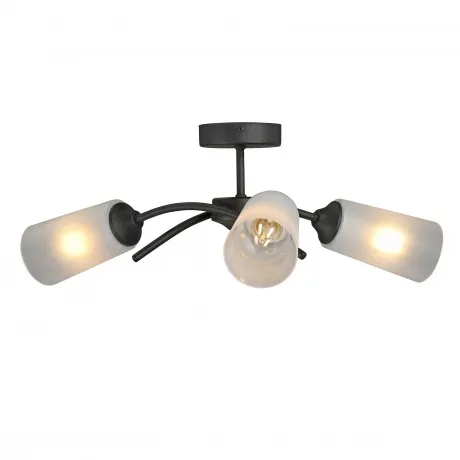 потолочная люстра с тремя плафонами из белого стекла, предназначена для использования с лампами накаливания мощностью до 40 вт каждая. стиль модерн подходит для спален и других помещений. общая мощность 120 вт, площадь освещения до 9 кв.м. крепление потолочное, материал основания не указан.
