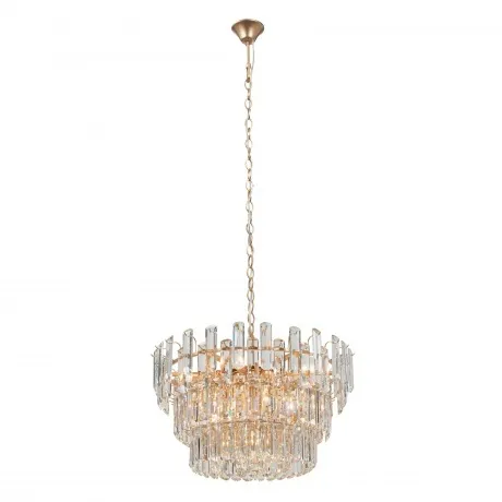 подвесная люстра vitaluce v53440-8/11 оснащена 11 лампами с цоколем e14 и максимальной мощностью 40 вт каждая, плафоны выполнены из хрусталя, корпус золотого цвета, высота 165 см, ширина 68.5 см, вес 28 кг, подходит для освещения помещений до 33 кв.м.