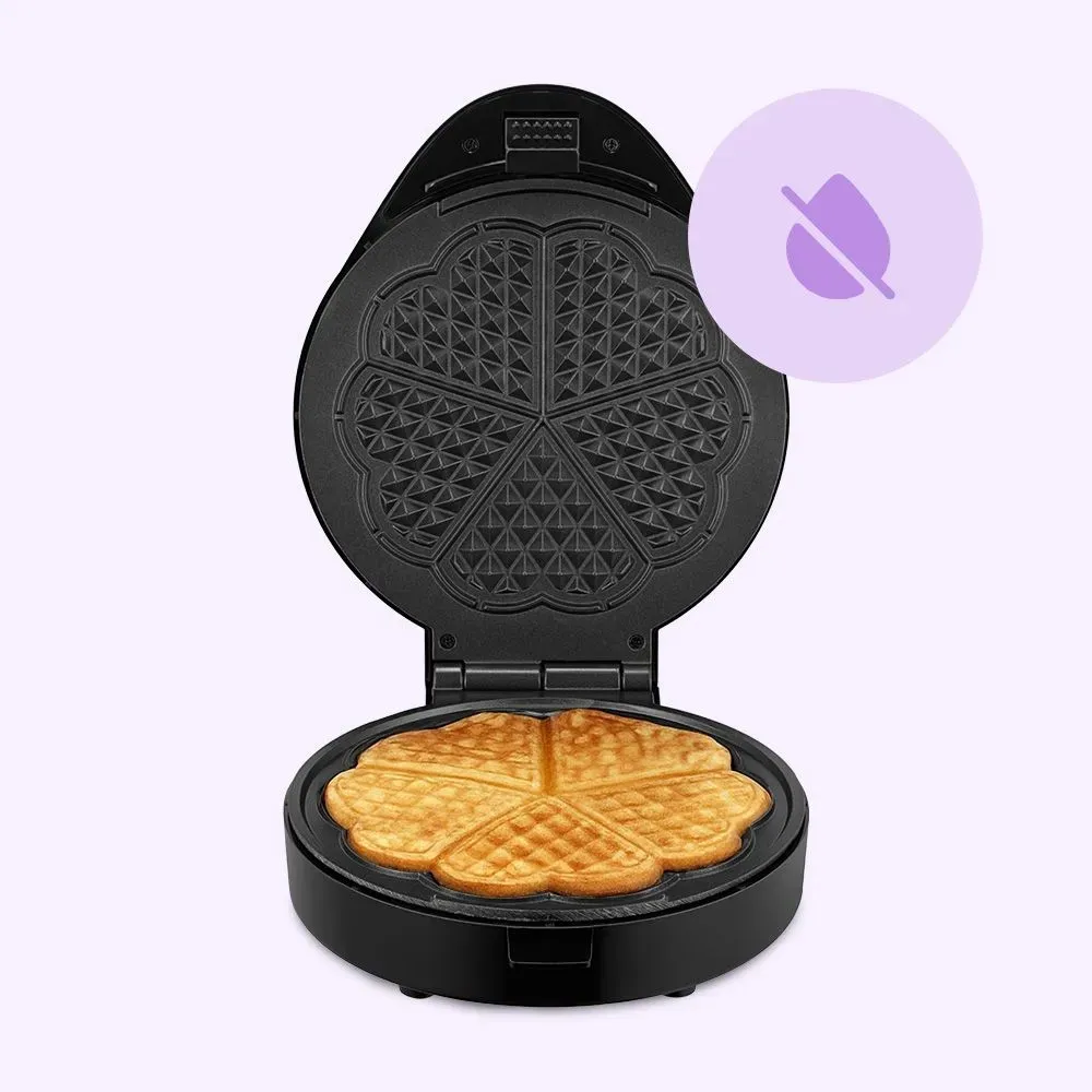 С помощью электрической вафельницы КТ-5614 вы можете печь вафли в форме цветка, которые при желании можно разделить на пять маленьких вафель в форме сердечка. Вафельница рассчитана на приготовление одной вафли в форме цветка.