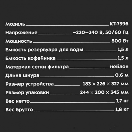 Описание товара Кофеварка капельная Kitfort КТ-7396
