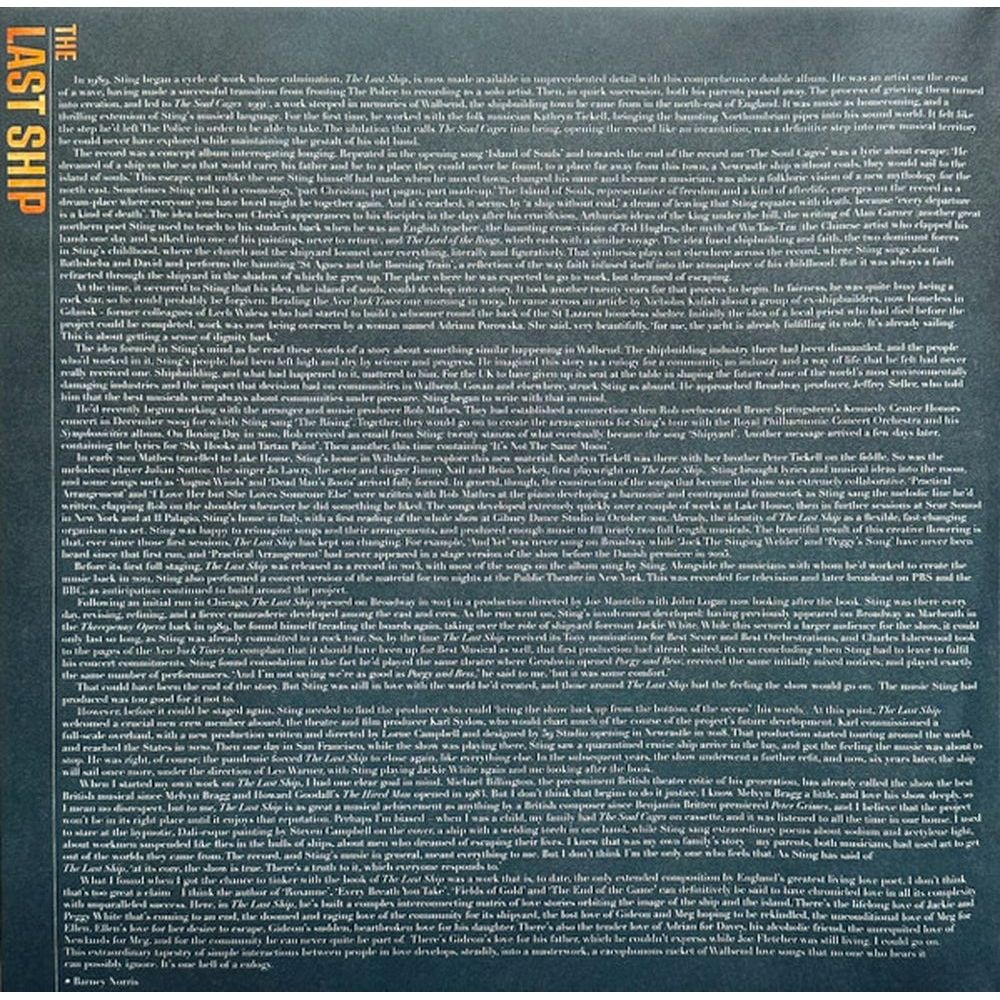 Стинг представляет новое, расширенное издание своего сольного альбома 2013 года. «The Last Ship (Expanded Edition)» включает пять совершенно новых, ранее не издававшихся записей, благодаря чему альбом теперь состоит из 24 треков. Издание на виниле. «The Last Ship» — мощный концептуальный альбом, затрагивающий глубоко личные темы: общность, дом и стойкость. Песни альбома были написаны для одноимённого мюзикла и вдохновлены им. Действие разворачивается в городе судостроителей в родном для Стинга Уолсенде на северо-востоке Англии, где жителям приходится адаптироваться к новой реальности после утраты отрасли, которая была сердцем их сообщества.
