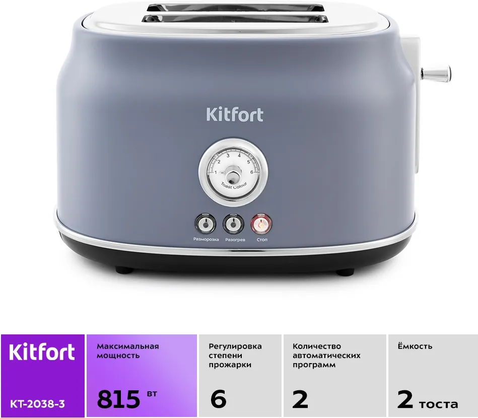 Описание товара Тостер Kitfort КТ-2038-3 серый