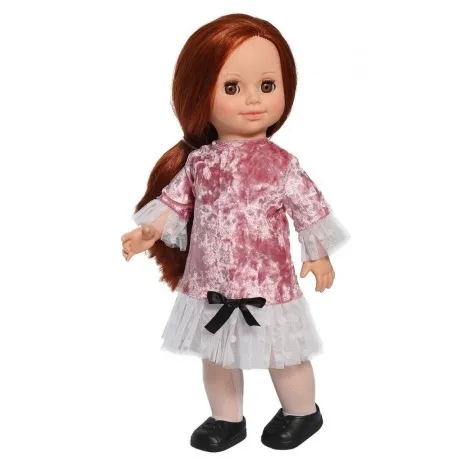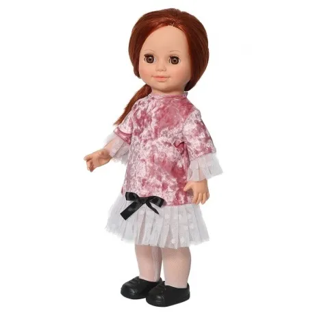 При нажатии на звуковое устройство она произносит фразы, побуждающие к действию. Она умеет закрывать глазки, ее можно укладывать спать. Продуманная конструкция позволяет легко сажать, ставить на ножки, переодевать.