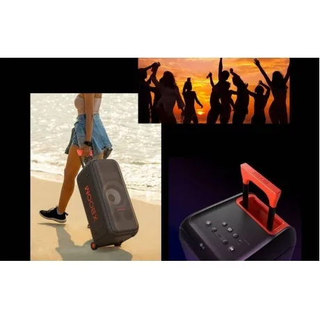 RGB-подсветка, караоке, колесики, регулировка громкости микрофона, режим PowerBank, стробоскоп