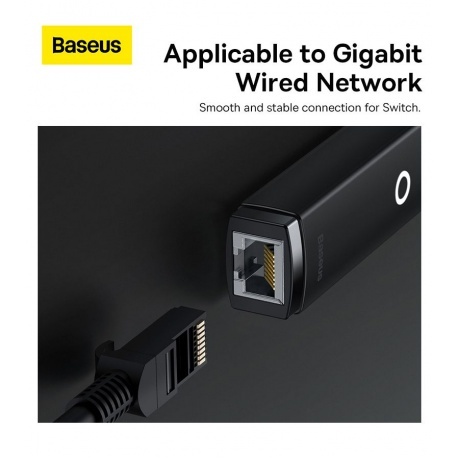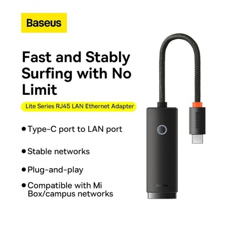 Адаптер Baseus Lite серии USB to RJ45, обеспечивает стабильный доступ к сети. Он передает данные со скоростью до 1000 МБ/с, а благодаря широкой совместимости его можно подключать его к устройствам с большинством популярных операционных систем. Высокопроизводительный чип обеспечивает стабильность и быструю реакцию. Адаптер чрезвычайно прочный и удобный, кроме того, он имеет защиту от перегрева. Подключите сетевой адаптер USB серии Baseus Lite к разъему RJ45 для стабильного доступа к сети. Высокопроизводительный чип обеспечивает надежное соединение, а функция plug & play позволяет подключаться мгновенно и экономить время. Адаптер также оснащен световым индикатором, который позволяет вам узнать, когда устройство работает.