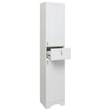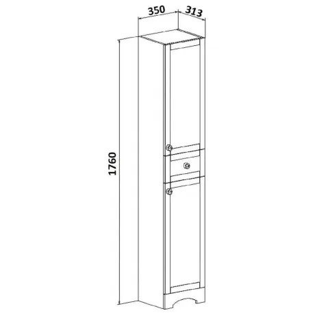 Шкаф-колонна напольный с двумя распашными дверками и выдвижным ящиком посередине. В каждом отделении - по одной внутренней полке. Петли со встроенным доводчиком, ящик - на шариковых направляющих полного выдвижения, ручки - 3шт. Устанавливается на 4 пластиковые опоры, скрытые за нижней фальшь-панелью. Выпускается только в правом исполнении.