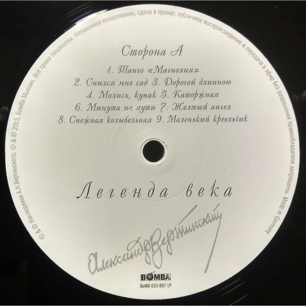 Вертинский Александр - Легенда Века (4640004136952) виниловая пластинка купить виниловую пластинку в Тюмени, цены на винил