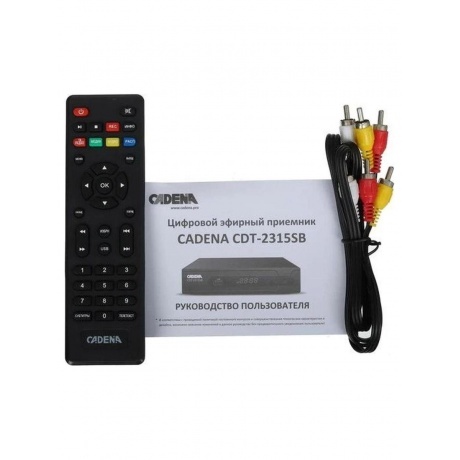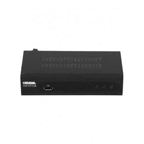 Приставка для цифрового ТВ Cadena CDT-2315SB с черным корпусом позволяет телевизору, не имеющему предустановленных цифровых тюнеров, принимать открытые каналы эфирного цифрового телевещания. Устройство располагает входом для подключения телеантенны и HDMI-разъемом для подключения к ТВ. Возможно также подключение через аналоговый интерфейс 3x RCA.