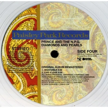 Ремастированное переиздание Diamonds And Pearls — тринадцатого студийного альбома Принса (первого с его новой группой The Power Generation), вышедшего в 1991 году. Лимитированное издание на двойном цветном виниле.. Альбом, включающий шесть популярных международных синглов, в том числе хиты «Gett Off», «Cream» и культовый заглавный трек, имел всемирный успех и достиг мультиплатинового статуса в США и Великобритании, где он остается его самым продаваемым альбомом.