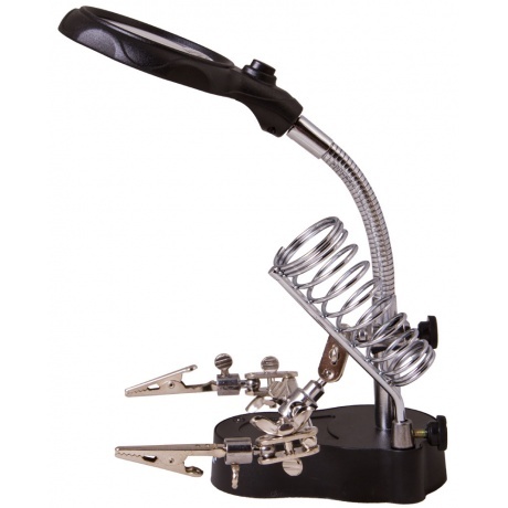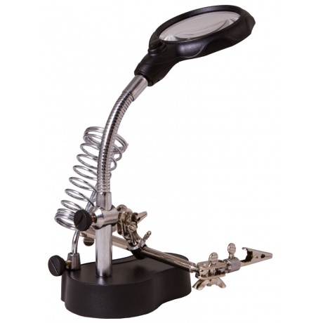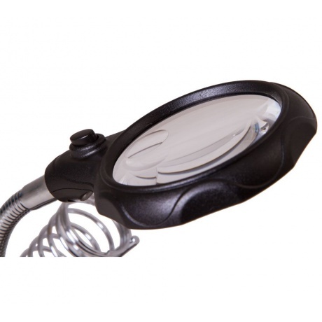 Настольная лупа Levenhuk Zeno Desk D3 создана специально для тех, кто занимается ремонтом плат, пайкой, моделированием, ювелирными и часовыми работами. Держатель для инструментов и держатели «третья рука» станут настоящей находкой для человека, который любит работать руками. Бифокальная линза дает два увеличения. На большом диаметре кратность составляет 3.5х, на малом – 12х. Лупа зафиксирована на гибком штативе и снабжена встроенной подсветкой, состоящей из двух ярких светодиодов. Выключатель подсветки расположен у основания линзы.