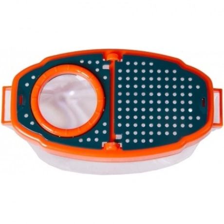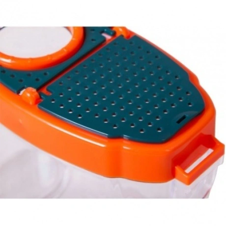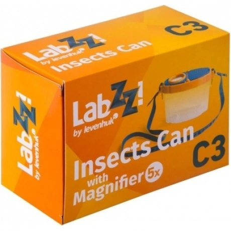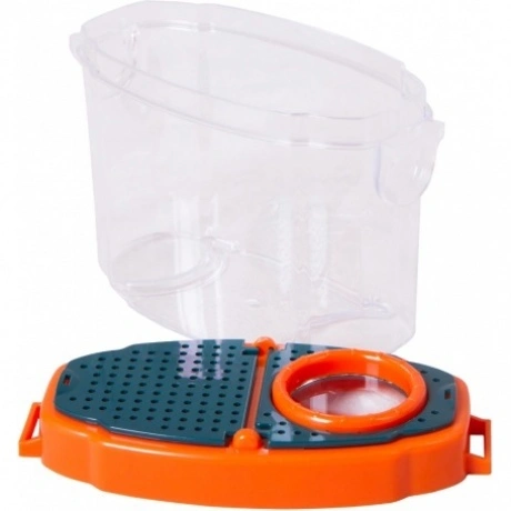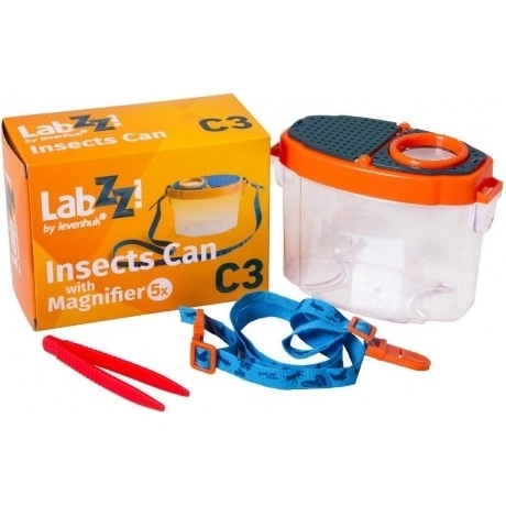 Лупа-стакан Levenhuk LabZZ C3 – это настоящий исследовательский инструмент для маленького ученого. Она представляет собой прозрачный бокс с крышкой, в которую встроена 5-кратная лупа. Внутрь бокса можно помещать разные предметы – минералы, части растений, листья деревьев. А затем легко изучать их с увеличением. В стакан можно поселить и насекомых или лягушат. Или заполнить бокс водой из пруда и наблюдать через прозрачные стенки за водными жителями – рыбками и головастиками. Для удобства можно присоединить к боксу длинный тканевый ремешок и носить его на шее.