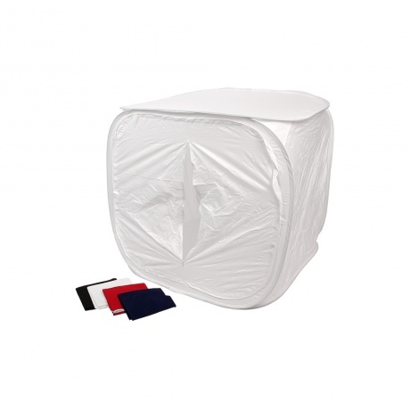 Складной фотобокс Godox DF-01 предназначен для предметной и макросъемки, размер фотобокса 120 х 120 х 120 см. Материал фотобокса позволяет получить равномерное мягкое освещение, а изменение угла подсветки сделает возможным формирование любого светотеневого рисунка. Стенки фотобокса выполнены из светопропускающей синтетической ткани, каркасом являются металлические пружины. Съёмная передняя стенка фотобокса с прорезью для объектива. Фотобокс быстро разбирается и имеет небольшой вес, что делает его удобным для использования не только в студии, но и для выездных съемок. В комплекте имеется набор фонов (красный, синий, черный, белый) и чехол для транспортировки.