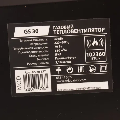 Описание товара Пушка тепловая Patriot GS 30 633445022