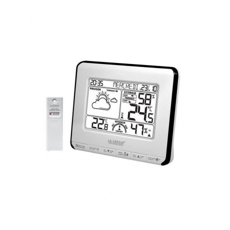 Домашняя метеостанция LaCrosse WS6818 предназначено для прогнозирования погоды, мониторинга температуры и влажности в доме и за его пределами, отслеживания уровня комфорта. В комплекте основной домашний блок и внешний беспроводной датчик. Данные с датчика передаются на основной блок с дисплеем на расстоянии до 90 метров. На цифровом черно-белом ЖК-дисплее отражаются данные температуры и влажности в помещении и на улице. Обновляются данные каждые 50 секунд. Кроме текущих температуры и влажности на мониторе отражаются максимальные и минимальные значения, точка росы, индекс жары. Графическое изображение типа погоды: солнечно, пасмурно, облачно, переменная облачность, дождь, снег и т.п. Пиктограмма изменения температуры в течении последних 12 часов. Отображение тенденции изменения внутренней и внешней температуры и относительной влажности. Прогноз погоды на ближайшие 12 часов. Встроенные часы с будильником и календарь, данные также отображаются на дисплее. Индикатор уровня комфорта в помещении и на улице. Измерение температуры в Цельсиях и Фаренгейтах. Диапазон измерения температуры в помещении от 0 до +50 градусов Цельсия. Диапазон измерения температуры снаружи от -40 до +60 градусов Цельсия. Основной монитор можно установить на горизонтальной поверхности или закрепить на стене (крепления в комплекте).
