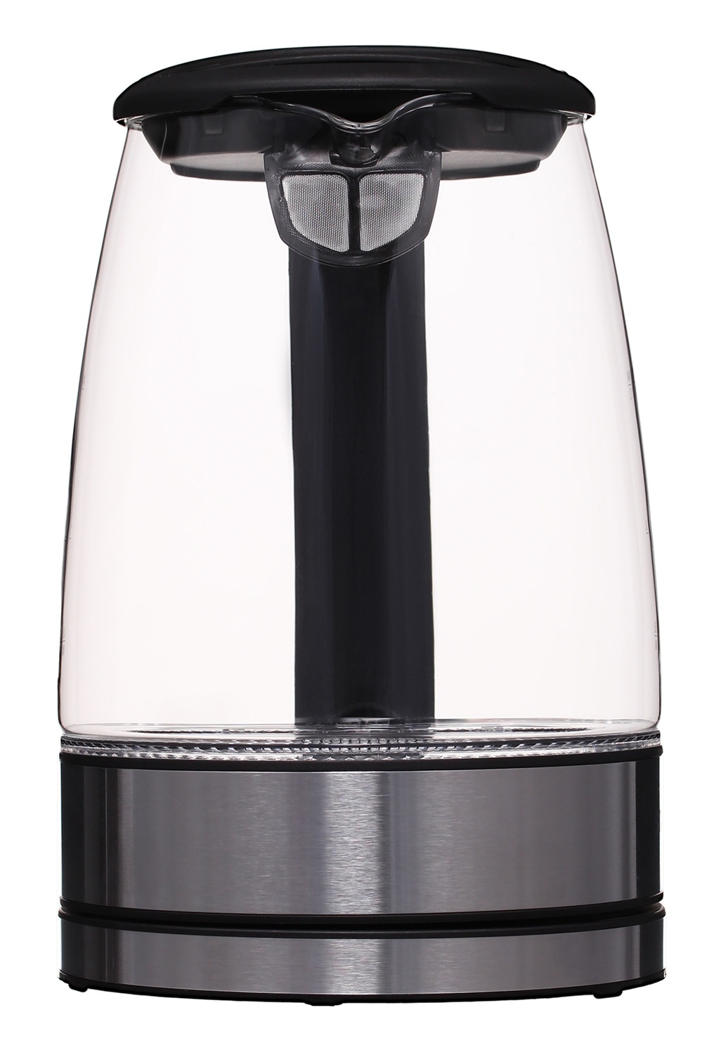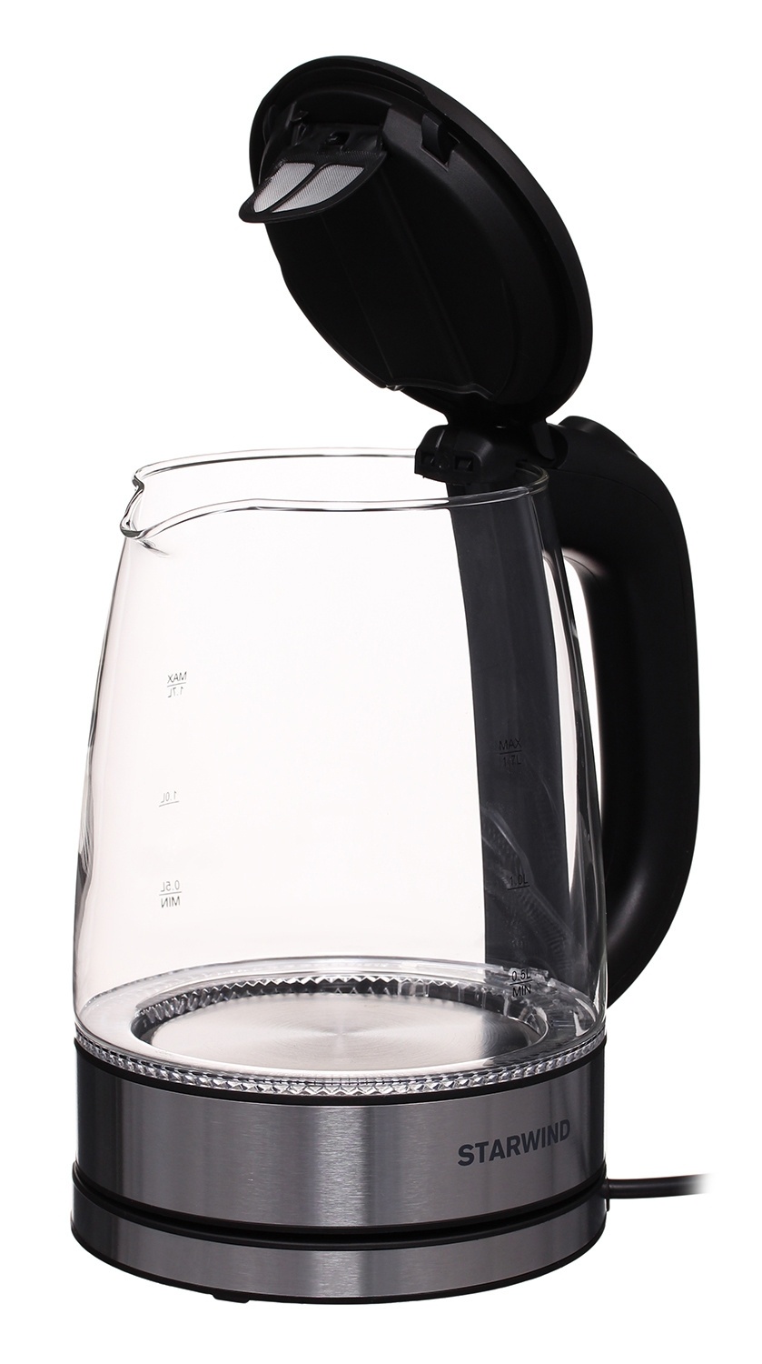 Электрический чайник STARWIND SKG5210 обеспечивает полную безопасность при контакте с горячей водой, так как чаша выполнена из боросиликатного стекла, устойчивого к высоким температурам, а нагревательный элемент скрыт под металлической пластиной, что также упрощает уход за изделием в случае появления накипи от жесткой воды. А если накипь все же появится, то задержится на фильтре, расположенном над носиком чаши. Крышка и ручка выполнены из пластика черного цвета и идеально сочетаются со стеклянной чашей, а вот подставка и нижняя часть чайника изготовлены из нержавеющей стали. Кнопка включения со световым индикатором расположены в верхней части ручки, что удобно при включении одной рукой. Также предусмотрена подсветка воды и индикатор уровня воды.