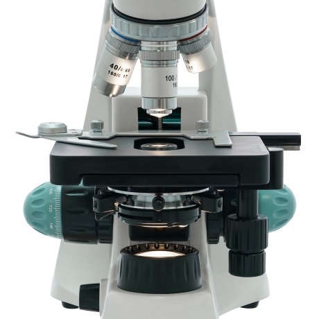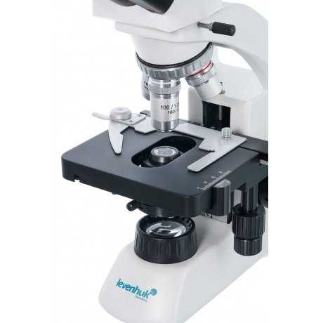 Levenhuk 500B – это лабораторный микроскоп с бинокулярной насадкой и ахроматической оптикой. В нем используется галогенное освещение, которое хорошо подходит для изучения окрашенных образцов. Возможности микроскопа будут интересны микробиологам, медикам, орнитологам, ветеринарам, биохимикам и другим специалистам. Микроскоп можно использовать и для учебных целей в высших учебных заведениях. Наблюдения ведутся в светлом поле. Бинокулярная насадка имеет небольшой наклон, что делает длительную работу с микроскопом более удобной. При необходимости насадку можно разворачивать в любую сторону – доступны все 360°. Широкопольные окуляры дают хороший обзор и обеспечивают 10-кратное приближение. Четыре ахроматических объектива передают контрастное и «живое» изображение, позволяя рассматривать мелкие структуры. Общее увеличение микроскопа находится в диапазоне от 40 до 1000 крат. Объективы 40х и 100х снабжены пружинящими оправами передней линзы, 100-кратный объектив можно использовать для иммерсионных наблюдений.