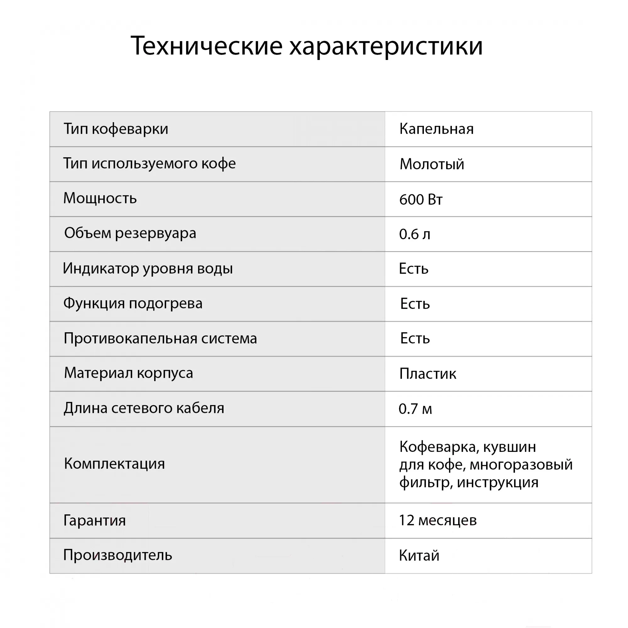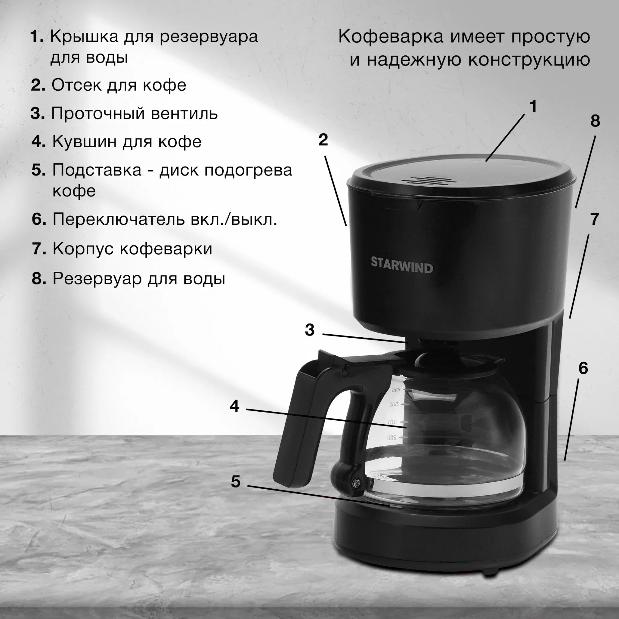 Описание товара Кофеварка капельная Starwind STD0610 600Вт черный