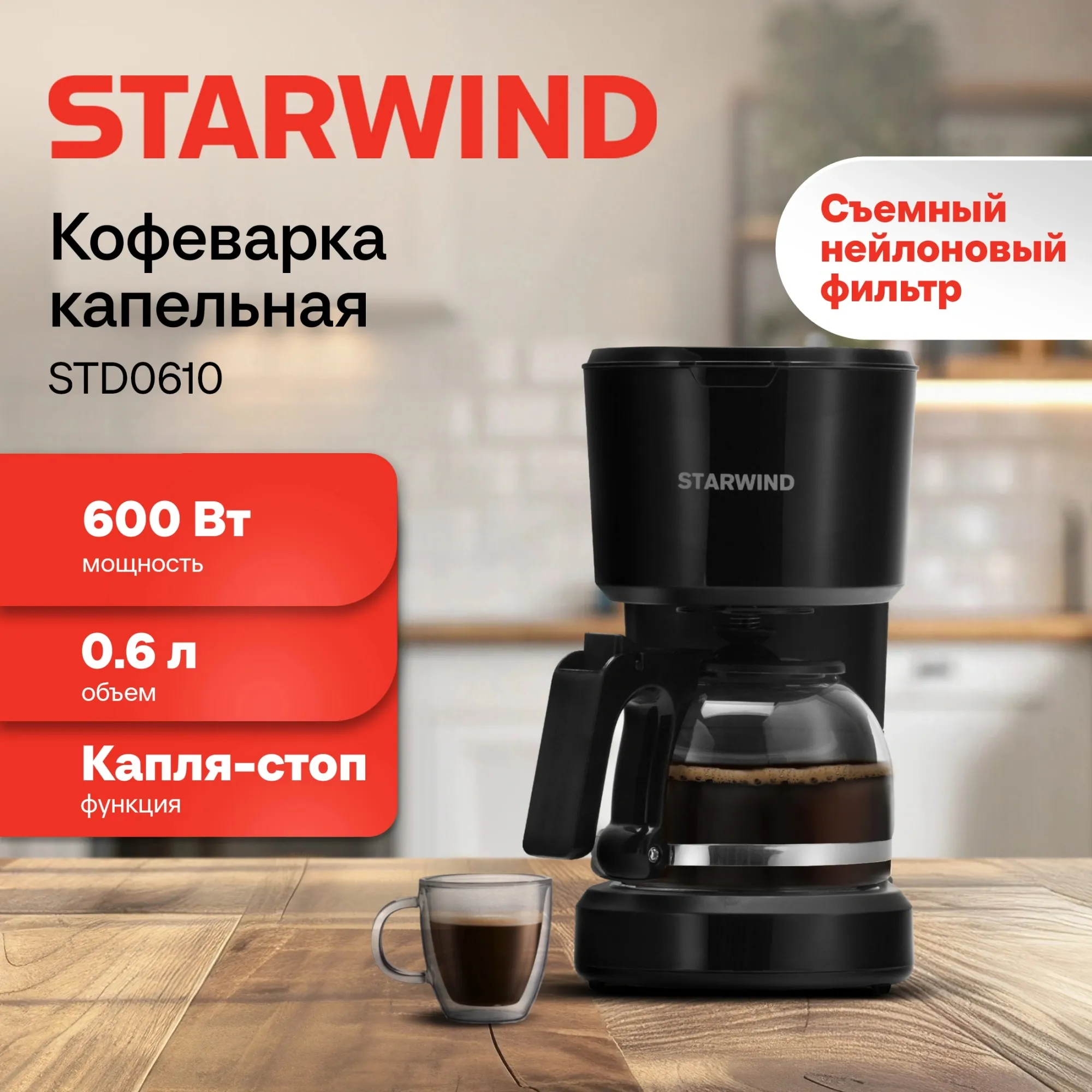 Кофеварка капельная Starwind STD0610 600Вт черный - стоимость товара 1580 руб. в интернет-магазине КотоФото. Характеристики, фото и описание доступны на карточке товара. Купить товар можно на сайте онлайн или заказать по телефону 8(800)505-43-75 в Уфе, а забрать в пункте самовывоза или оформить доставку на дом.