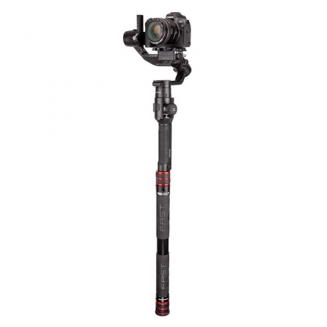 Универсальное крепление для стабилизатора (3/8 и 1/4 винт). Нагрузка до 6,5 кг на максимальном раскрытии монопода. Технология поворотных замков FAST для быстрой работы. Исключительно легкий – карбоновая конструкция 800 г. Полное раскрытие (1,15 м) в 2 раза больше мин. рабочей длины.