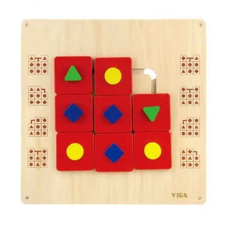 Головоломка сможет стать отличным развлечением для ребенка, которое поможет ему развивать логическое мышление. Ребенку необходимо двигать формы, согласно схемам, напечатанным по сторонам.