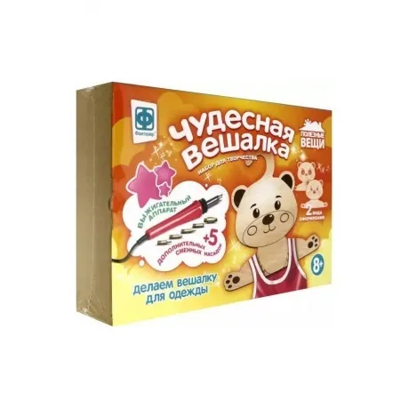выжигательный аппарат с 5 сменными насадками, основа под вешалку, фанера без рисунка, копировальная бумага, инструкция