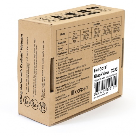 Описание товара Веб-камера ExeGate BlackView C525 HD Tripod (EX287386RUS)