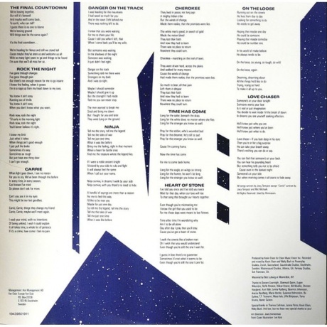 The Final Countdown, Rock The Night, Carrie, Danger On The Track, Ninja, Cherokee, Time Has Come, Heart Of Stone, On The Loose, Love Chaser
