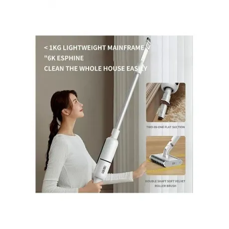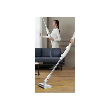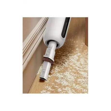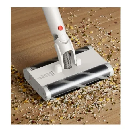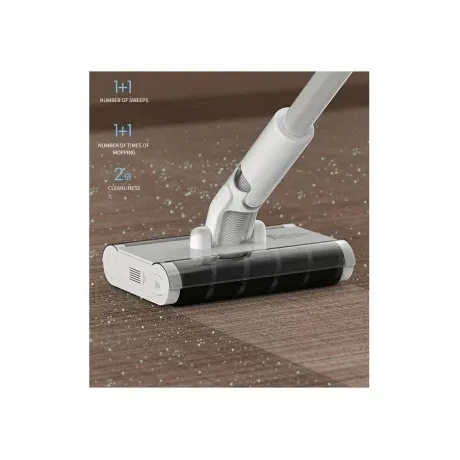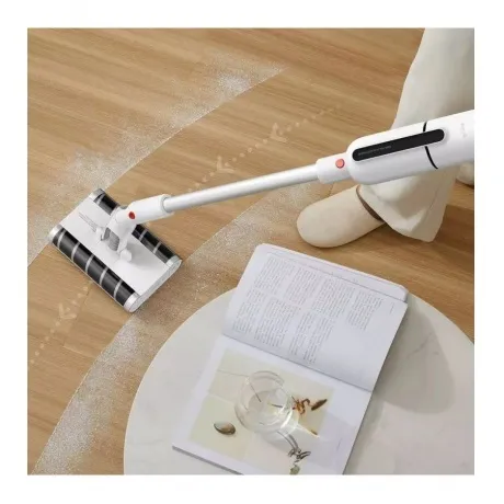 Пылесос вертикальный Deerma VC55 оснащается бесщеточным электродвигателем, который развивает силу всасывания до 13 000 Ра. Подходит для уборки гладких напольных покрытий, а также ковров с высоким ворсом. Уровень шума не превышает 78 дБ. Конструкция основной щетки предусматривает наличие двух роликов, которые вращаются в разные стороны, что повышает эффективность уборки на 50%. Каждый ролик работает от собственного мотора, благодаря которому он вращается со скоростью 1200 оборотов в минуту. Шарнирное соединение со штангой позволяет щетке вращаться на 360. Объем пылесборника составляет 300 мл. О необходимости его опорожнения сообщит светодиодный индикатор. Для включения/выключения устройства предусмотрена кнопка на корпусе. Система фильтрации представлена металлической сеткой, циклонным пылесборником и воздушным фильтром. Встроенные аккумуляторы обеспечивают до 20 минут работы в экономичном режиме или до 10 минут в формате повышенной мощности. Зарядка осуществляется через кабель USB Type-C в течение 5-11 часов.