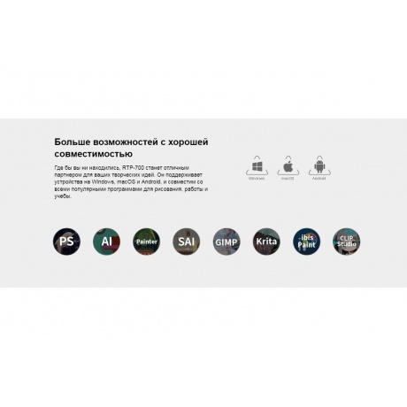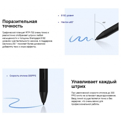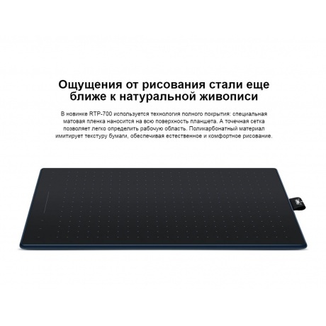 Inspiroy RTM-700 элегантный, профессиональный планшет, сочетающий передовые характеристики и эргономичный дизайн. 6 сенсорных экспресс-клавиш и сенсорная полоска ускоряют рабочий процесс. Уникальное поликарбонатное покрытие рабочей области придает максимальную реалистичность процессу рисования. Благодаря технологии полного покрытия у планшета тонкие рамки, он имеет малый вес и небольшую толщину. Планшет удобно брать в дорогу, при этом его можно подключить как к устройствам на Windows/MacOS, так и Android. Порт USB Type-C позволяет легко и быстро подключить планшет, не заботясь о правильном положении кабеля. Новая модель пера PW400 вдохнет жизнь в каждую линию благодаря высокой чувствительности к давлению, поддержке угла наклона до 60° и отклику 300 PPS. Лаконичный дизайн и эргономичная форма делают процесс рисования удобнее, чем когда-либо. Планшет представлен в двух цветах: сумеречный синий и космический черный.