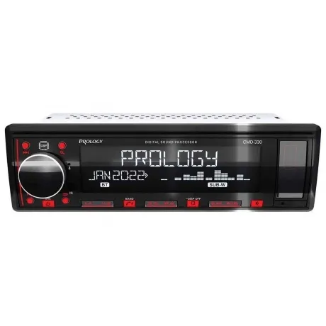 PROLOGY CMD-330 — FM / USB ресивер с Bluetooth и встроенным DSP - аудиопроцессором, стандартного размера 1DIN, который обеспечивает прием радиостанций в диапазоне FM / УКВ / AM и воспроизведение медиафайлов MP3, WAV, и FLAC форматов, записанных на USB накопители, передачу звука с внешних источников через линейный аудиовход и беспроводной интерфейс Bluetooth. Поддерживается управление мобильным телефоном через интерфейс Bluetooth (ver. 4, 2). Устройством можно управлять при помощи мобильного приложения Prology Audio, установленного на Ваш смартфон с операционной системой Android или iOS.