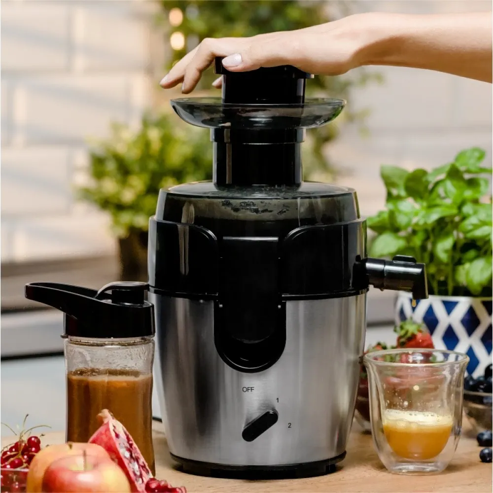 Если вы любите свежевыжатые соки, вам обязательно понравится соковыжималка центробежная ZELMER ZJE4800 800 Вт и двумя скоростями. Благодаря большому загрузочному отверстию диаметром до 65 мм вам не придется резать фрукты и овощи на более мелкие кусочки — в него поместится даже целая свекла или яблоко. Сито из нержавеющей стали легко справится с более твердыми фруктами, а функция Anti-Drip предотвратит капание. Бутылка для воды из тритана, входящая в комплект, позволит вам взять сок на работу или в школу. Позаботьтесь о своем здоровье с надежной соковыжималкой Zelmer!