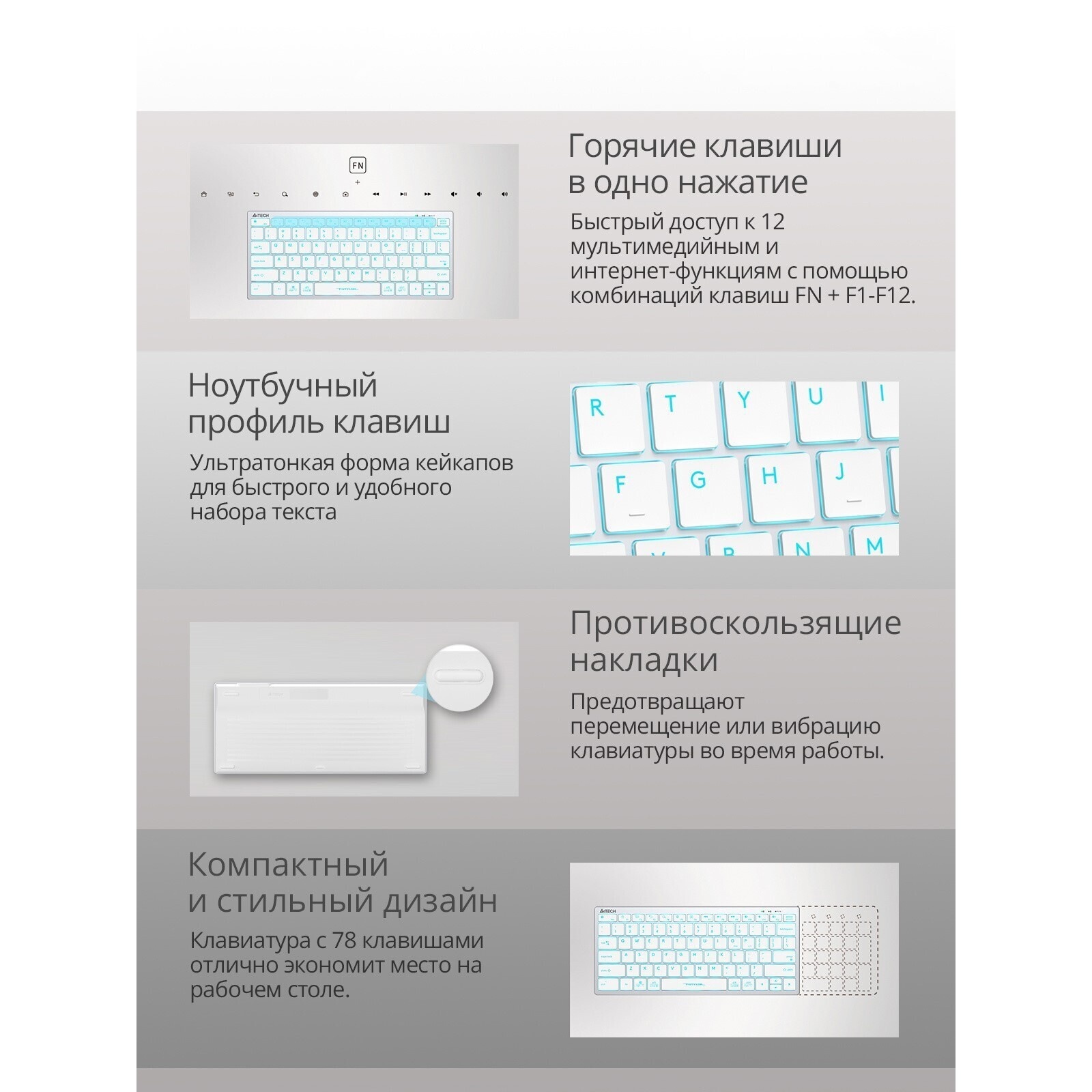 Купить Клавиатура A4Tech Fstyler FX61 белый - по цене 2343 руб. в Уфе с доставкой или самовывозом. Заказ можно оформить на нашем сайте kotofoto.ru или по телефону 8(800)505-43-75. Вы можете забрать товар в одном из пунктов самовывоза в Уфе или оформить доставку на дом в удобное для Вас время.