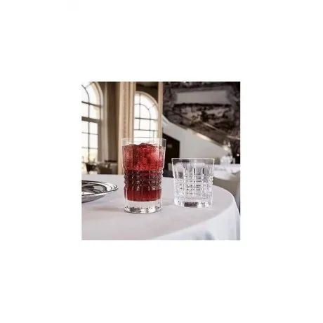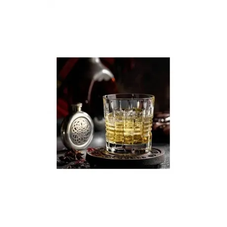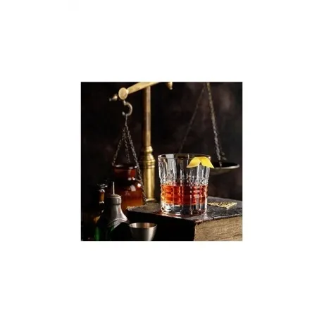 Данные бокалы относятся к типу бокалов Олд фэшн – в крупные и низкие стаканы легко помещается достаточное количество кубиков льда и алкоголя. Первоначально в такие стаканы наливали виски, джин со льдом, бренди и бурбон. Толстое дно не позволит льду таять слишком быстро. Дизайн серии Rendez-Vous, вдохновленный стилем ар-деко, как нельзя лучше подчеркивает мужественность, брутальность и строгость линий стаканов Олд Фэшн благодаря смелости геометрических форм и дорогим современным материалам.
