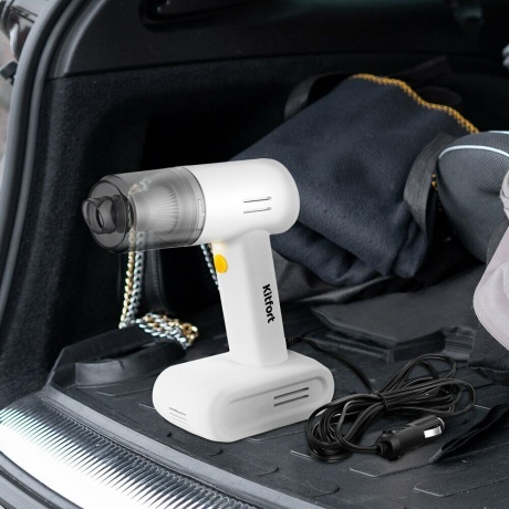 Автомобильный пылесос «4 в 1» Kitfort КТ-5171 сочетает в себе функции 4 устройств: пылесоса, который легко справится с пылью и мусором, фонарика, манометра для измерения давления в шинах и компрессора для накачки шин, мячей, надувных игрушек и матрасов. Автомобильный пылесос Kitfort КТ-5171 работает от прикуривателя. Благодаря этому вы можете очистить салон автомобиля в дороге, проверить давление в шинах или накачать их. Длина шнура 2.9 метра. Поэтому устройство дотянется до любого места. Шланг насоса оборудован быстроразъёмным соединением, подходящим для ниппелей автомобилей, мотоциклов, большинства велосипедов и самокатов. В комплекте с насосом поставляются насадка для накачки шин, мячей, надувных игрушек и матрасов. На панели управления расположен дисплей, на котором отображается давление и режим работы насоса. Также вокруг него расположены кнопки включения компрессора, фонарика, изменения целевого давления и единиц измерения. Узкая насадка поможет вам вычистить труднодоступные места и щели. Ворсовая насадка - для уборки кресел и ковриков автомобиля. Ворсовая щётка необходима для очистки поверхностей от шерсти, а также ей удобно убирать решётчатые поверхности. Над кнопкой включения расположен фонарик, свет от которого направлен прямо под входом пылесоса. Это поможет при уборке темных участков автомобиля или в условиях, когда нужно подкачать шины колеса в темноте. Циклонный фильтр отсеивает наиболее тяжёлые или объёмные загрязнения, попавшие в пылесборник. Ёмкость пылесборника 200 мл.