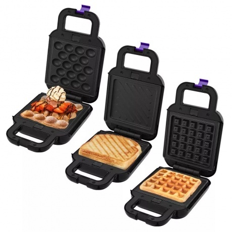 Вафельница «3 в 1» КТ-З609 поможет испечь бельгийские и гонконгские вафли, а также приготовить бутерброды. В комплекте три пары съёмных панелей. Разнообразные рецепты и простота приготовления сделают ваши завтраки разнообразнее и вкуснее!