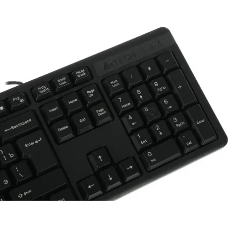 Комплект из клавиатуры и мыши A4Tech KK-3330S предназначен для повседневной работы в офисе и дома. В него входят полноразмерная клавиатура со 104 мембранными клавишами и цифровым блоком, а также оптическая светодиодная мышь с разрешением 1200 dpi и тремя стандартными кнопками. На основании корпуса клавиатуры предусмотрены выдвижные ножки для регулировки высоты. Устройства A4Tech KK-3330S подключаются по проводному интерфейсу USB и отличаются надежностью в эксплуатации. Среди других особенностей отмечается водостойкая конструкция клавиатуры.