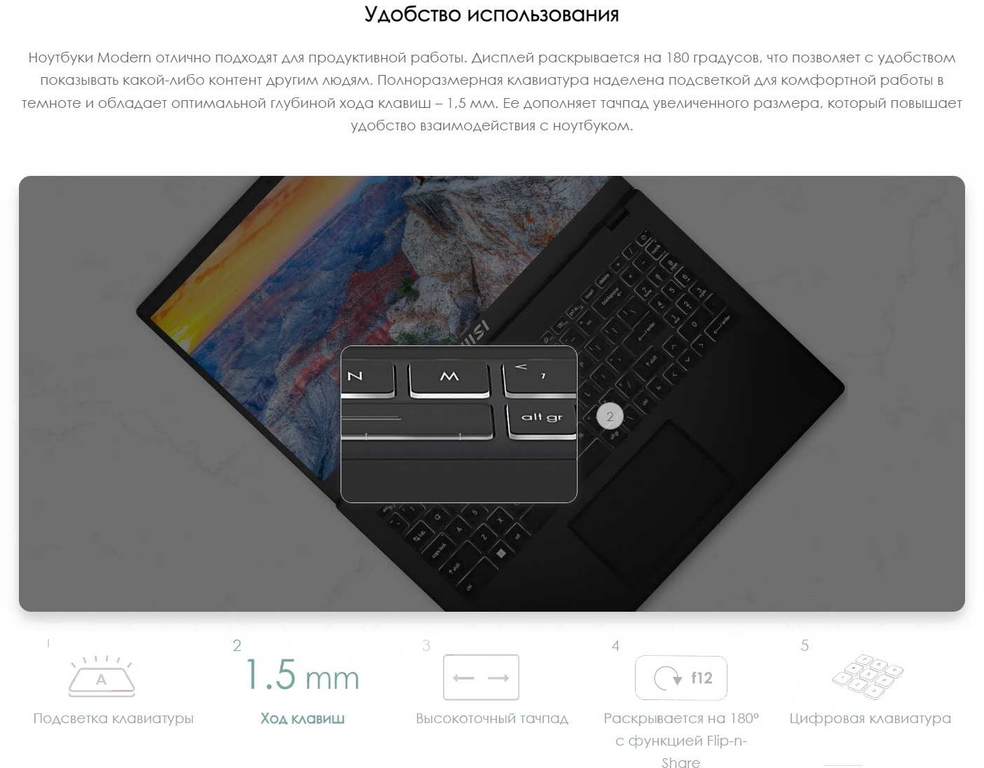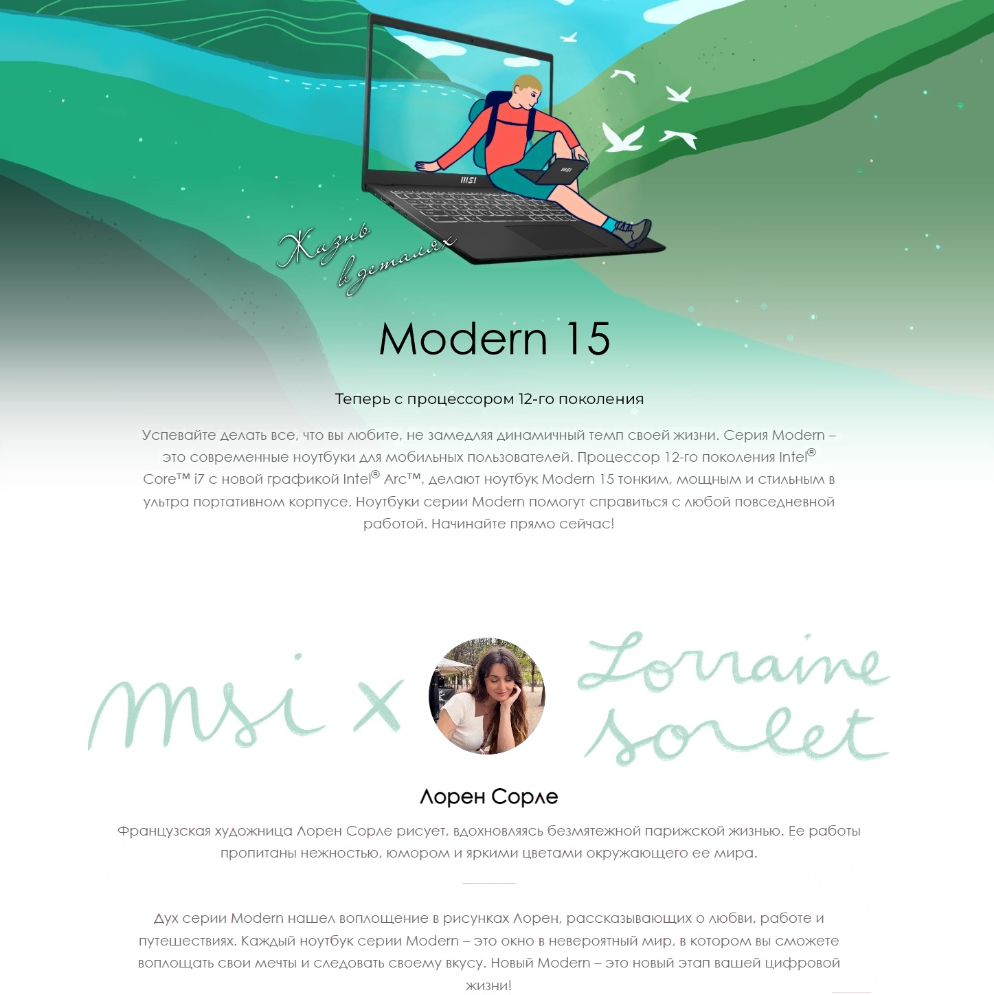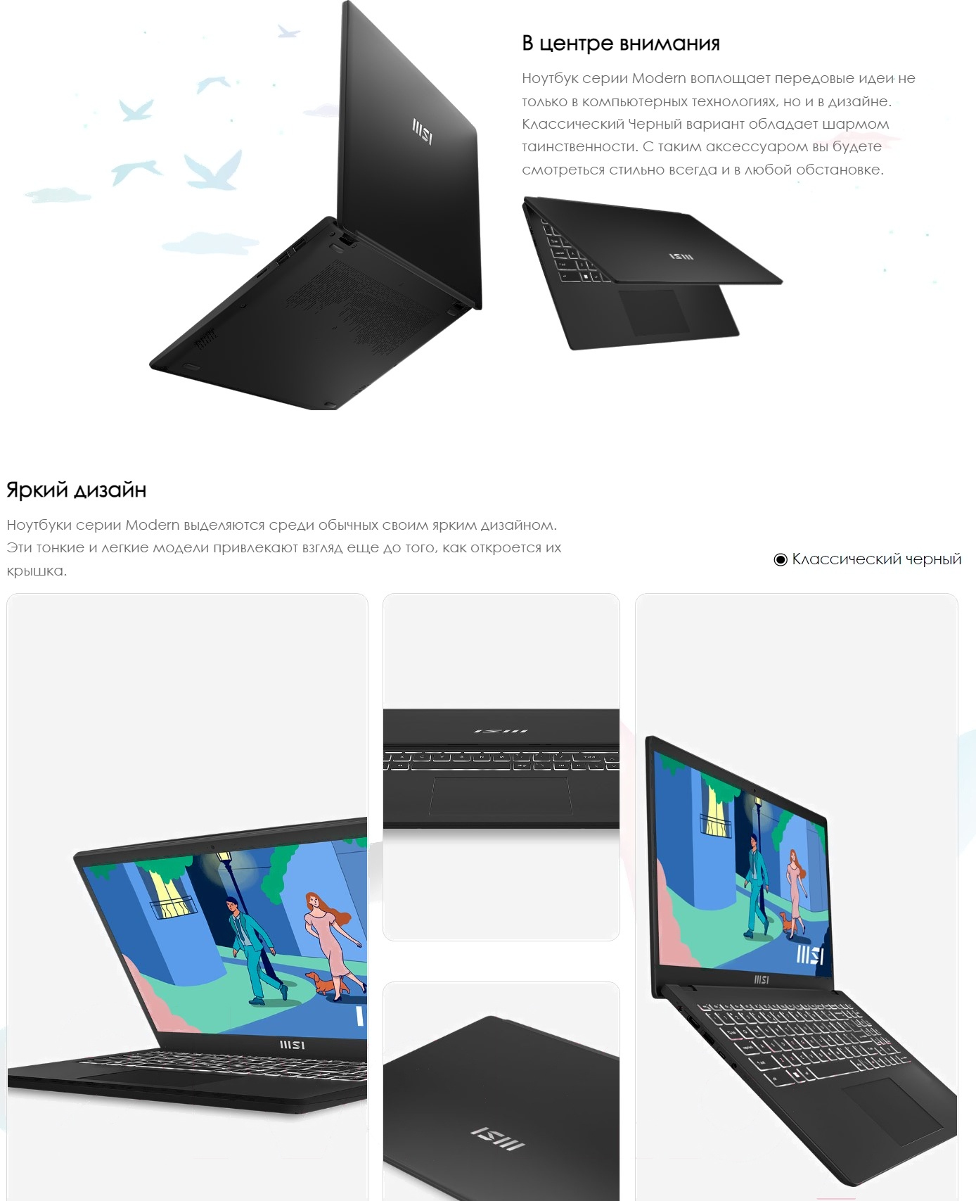 Описание товара Ноутбук MSI Modern 15 MS-15HK (B7M-264XBY)