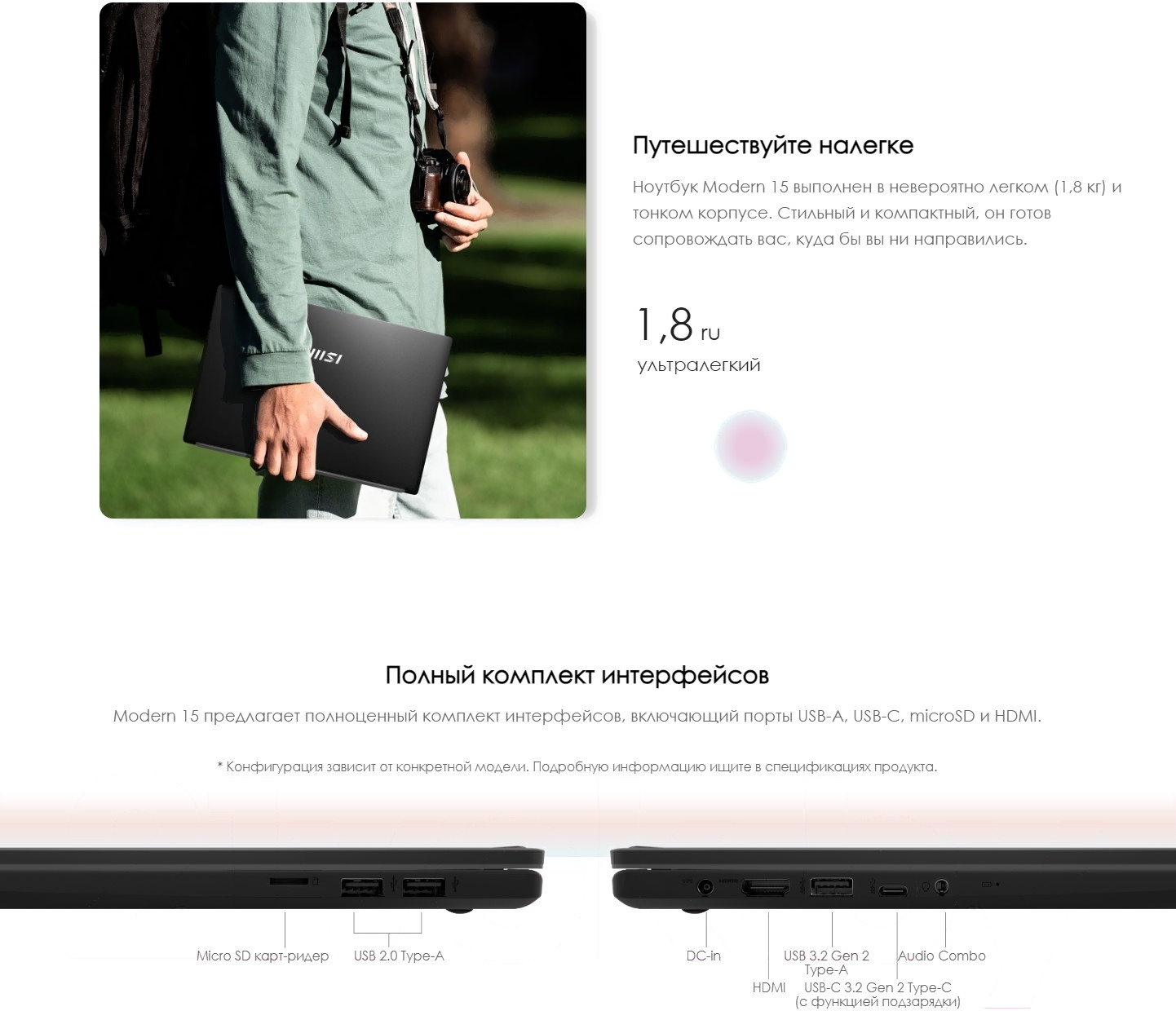 Отзывы о товаре Ноутбук MSI Modern 15 MS-15HK (B7M-264XBY)