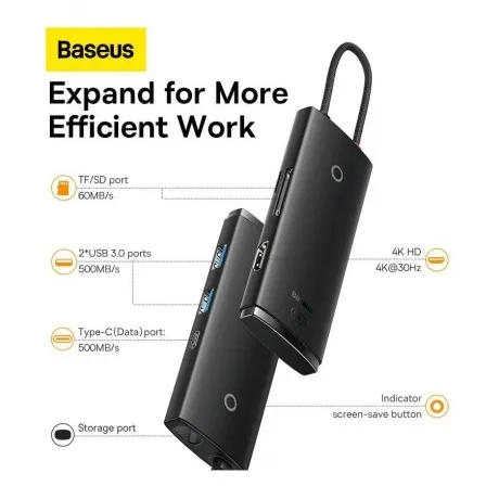 Описание товара Хаб-адаптер Baseus Lite Series Black (WKQX050001)