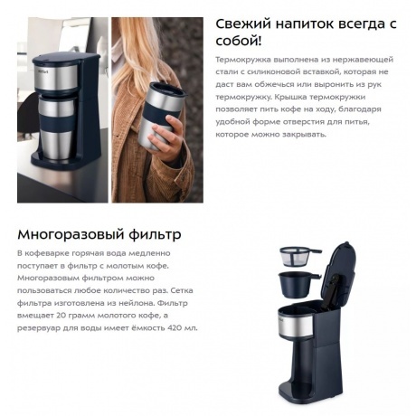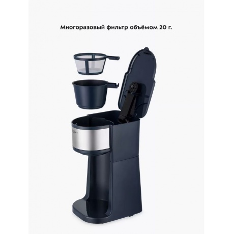 вместимость фильтра до 20 г молотого кофе, многоразовый фильтр