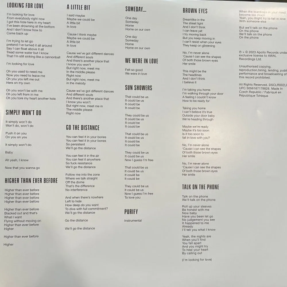 Looking For Love, 3: AM, Higher Than Ever Before, A Little Bit, Go The Distance, Someday, We Were In Love, Sun Showers, Purify, Brown Eyes, Talk On The Phone