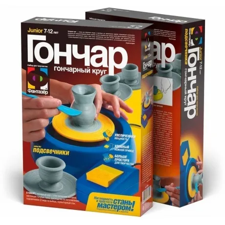 Набор для творчества Фантазёр Гончар Подсвечники/8 217002 способствует развитию творческого потенциала, воспитывает усидчивость и терпение. «Гончар» научит вашего малыша старейшему ремеслу на планете и познакомит с принципом работы гончарного круга. Технология почти не изменился за последние 4 000 лет, с тех пор как в Древнем Египте с помощью гончарного круга делали посуду для правителей и простонародья. Но жизнь все-таки не стоит на месте, поэтому гончарный круг «Фантазер» оснащен небольшим моторчиком, что позволяет формовать вазу или кувшин обеими руками. Работа с глиной развивает художественные способности, воображение и мелкую моторику. Кроме того, многие специалисты рекомендуют ее как арт-терапию