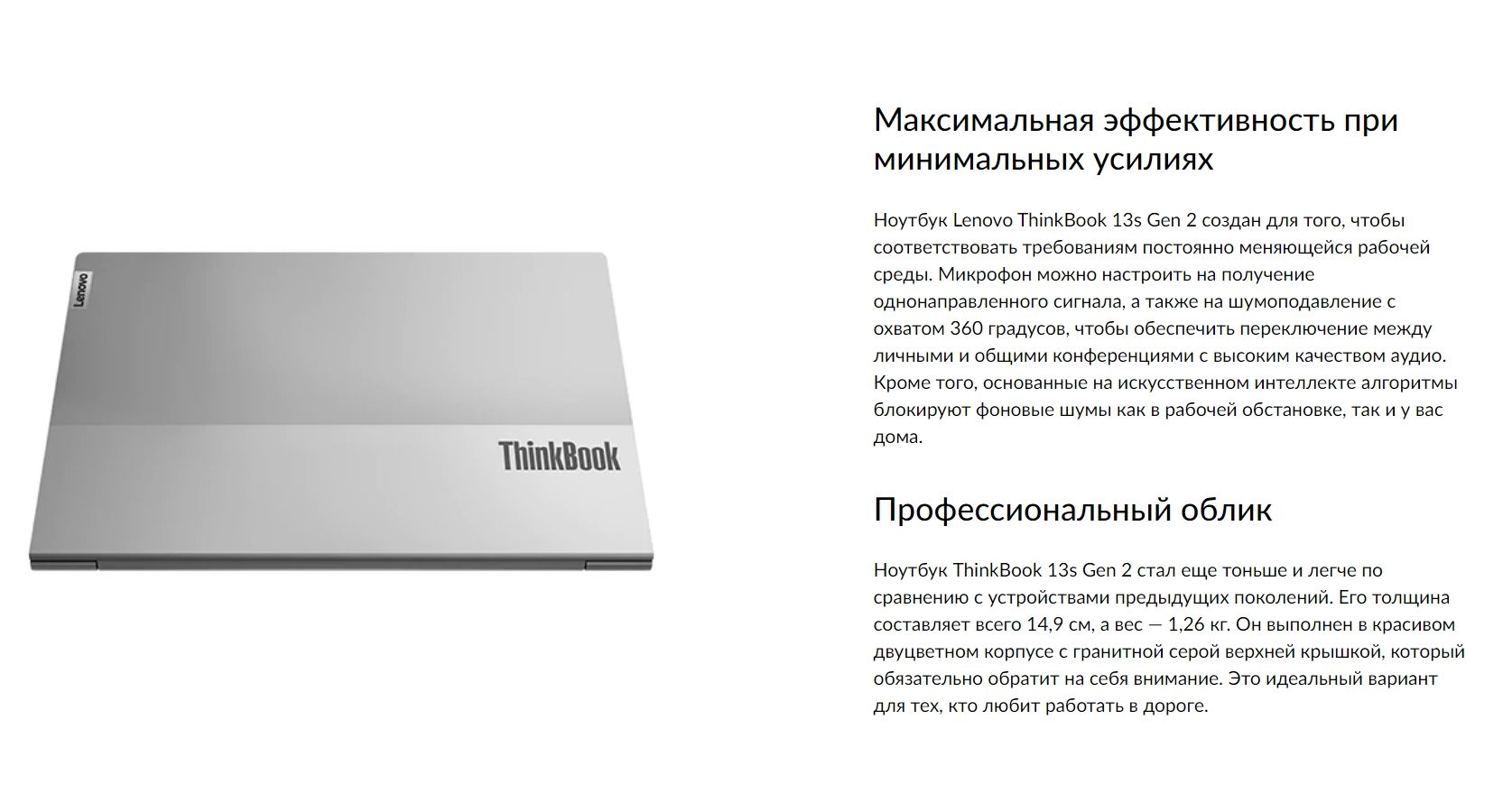 Описание товара Ноутбук Lenovo ThinkBook 13s G2 (20V9000NAU)