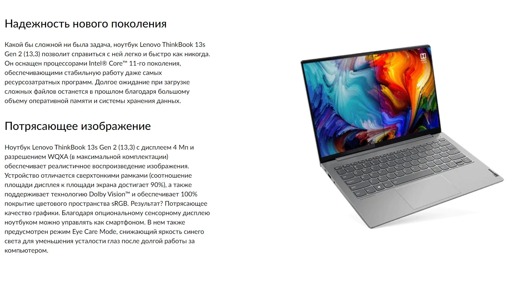 Отзывы о товаре Ноутбук Lenovo ThinkBook 13s G2 (20V9000NAU)